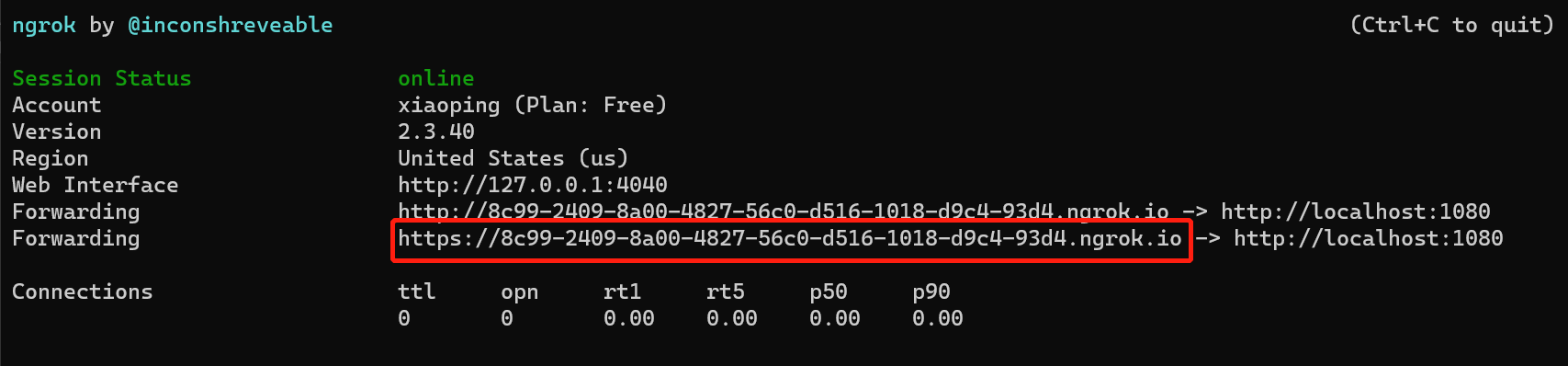 值得注意的是,每次运行命令都会重新生成新的域名地址,要想固定域名的话,需要付费。