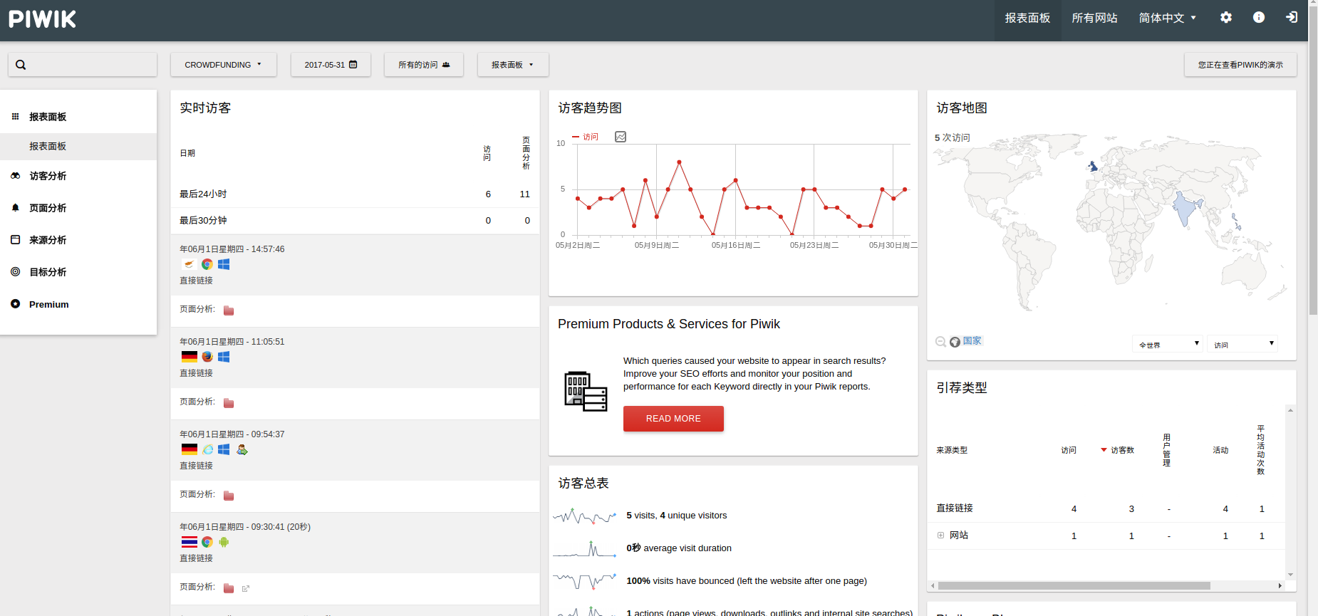 通过对网站来源的统计和分析,可以了解我们在某个网站上的广告投入有没有收到预期的效果。 可以区分不同地区的访问人数、甚至产品交易额等。 百度统计、google 分析、站长工具等等,只需要在页面嵌入一个js即可,但是,数据始终是在对方手中,个性化定制不方便,推荐使用google的piwik开源网站访问统计系统。
