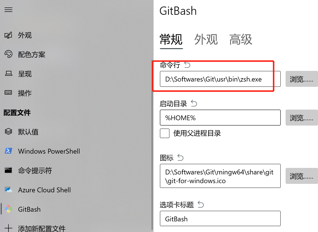 zsh.exe的路径 - 还需要在