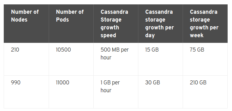 默认的监控体系(Cassandra/Hawkular/Heapster)可以监控25000个pods。