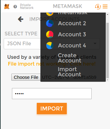 我们把这个账号的json文件导入到chorme插件metamask里,便于后面调试和演示